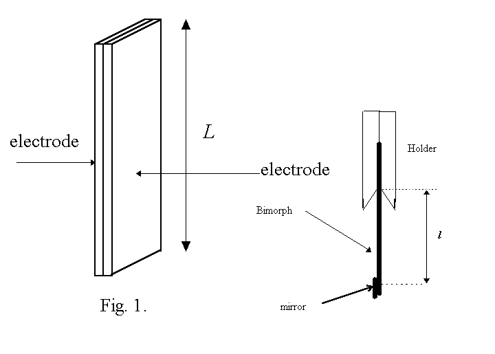 - A bimorph of length L=(38+-1) mm, with a small mirror attached